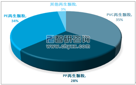 目前,我国再生塑料颗粒产量主要有PVC颗粒、PE颗粒以及PP颗粒。其中PVC颗粒、PE颗粒占比最大分别达到了35%和34%。